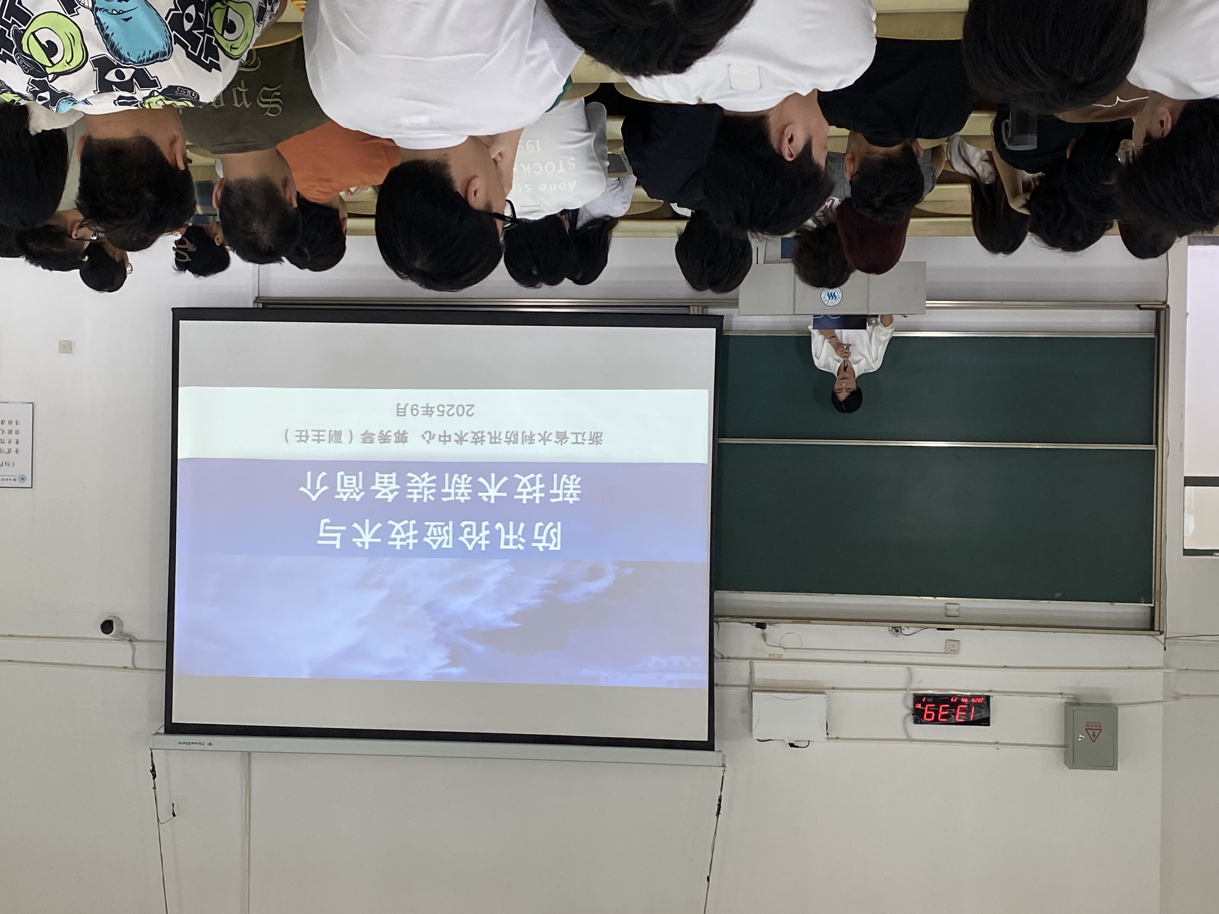郭秀琴副主任以“防汛抢险技术与新技术新装备简介”为主题,以“防汛是水利人的天职”为脉络,围绕防汛防台基础知识、堤防应急抢险技术、新材料新装备应用三大板块展开详细讲解。介绍防汛基础知识时,结合我省地理特征,阐述暴雨、洪水、台风的形成机制与防御重点;谈及堤防抢险时,通过拆解管涌、滑坡等常见险情的识别方法及处置要点,结合近几年省内外抢险案例,将专业的抢险技术深入浅出的传授给同学们;讲解新材料新装备时,重点介绍了卫星通信保障装备、堤防隐患探测装备、堤防管涌漫溢险情抢护新装备和强排泵车水陆两栖车、冲锋舟及橡皮艇等大型装备的性能和用途,直观的讲解和实战应用的案例,让同学们切实感受到科技赋能防汛的力量。