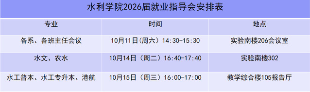 根据学校关于毕业生就业服务工作相关安排,学院定于2025年10月召开各专业就业(考研)指导会,2026届毕业生需全体参加,具体安排如下表: