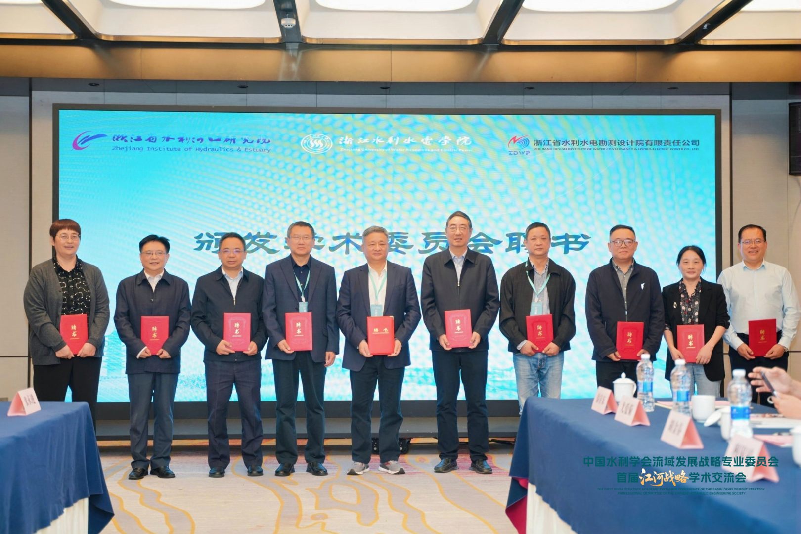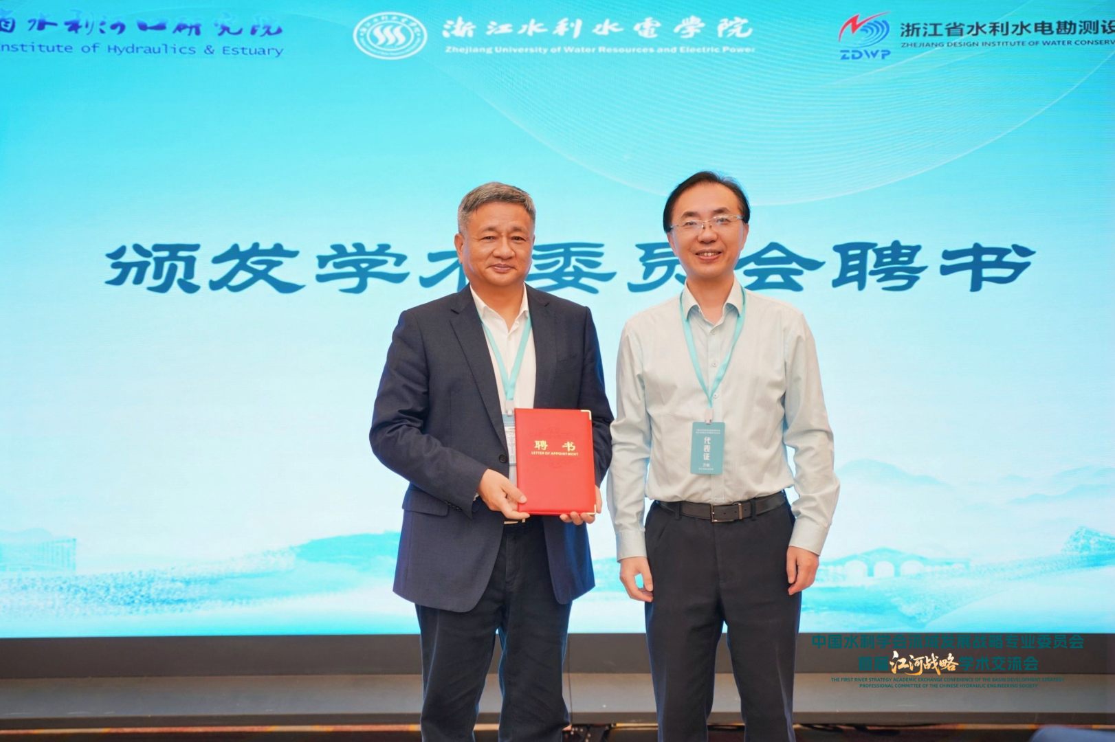 随后,万健宣读了首届学术委员会名单。钮新强院士受聘为学术委员会主任,清华大学王忠静教授、南京水利科学研究院原副院长吴时强受聘为学术委员会副主任,朱法君、江恩慧、许月萍、李一平、刘晓波、刘德有、王卫标、张永进、曾剑、徐存东等一批国内顶尖专家学者受聘为委员。万健与涂成杰共同为到会委员颁发了聘书,标志着实验室最高学术指导机构正式成立。