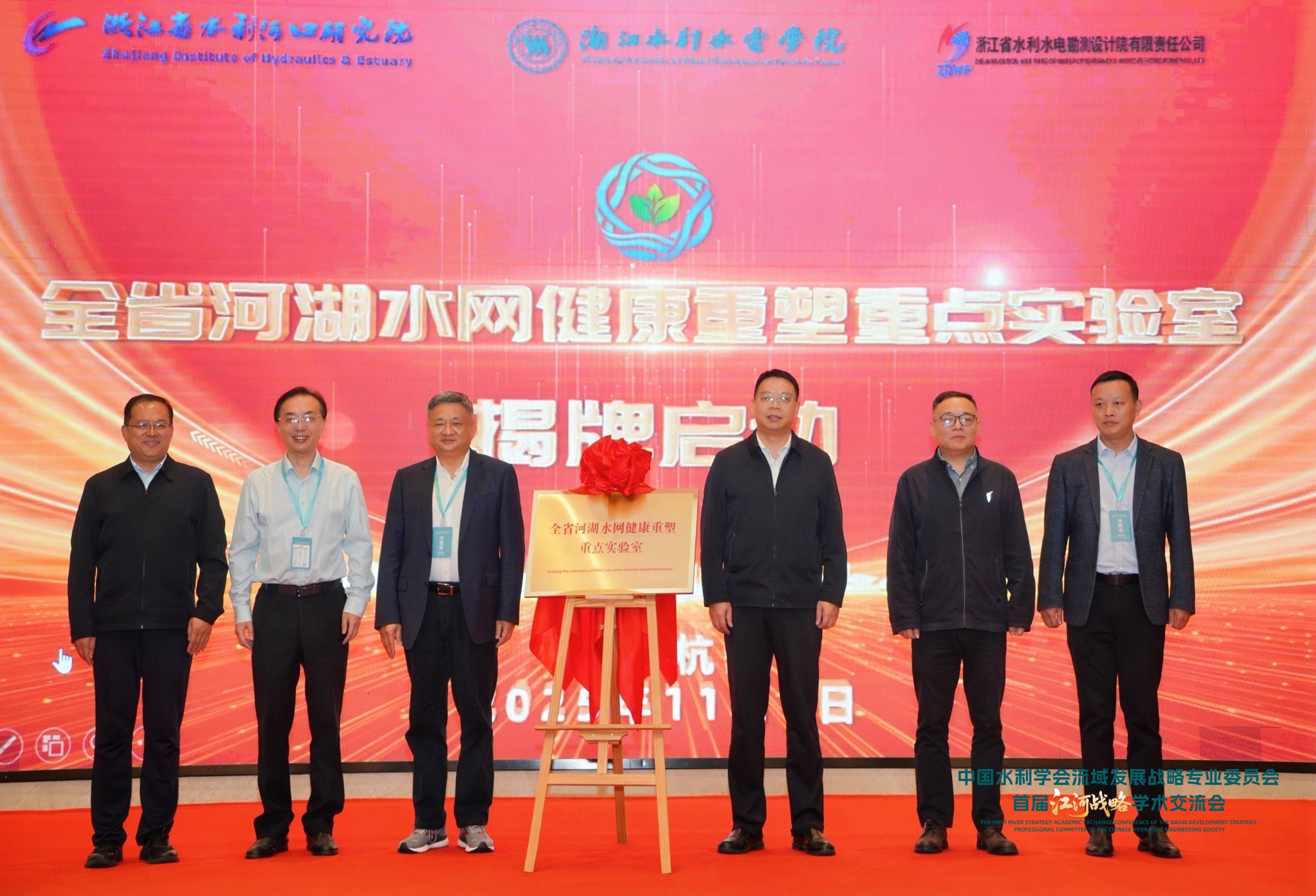 11月1日上午,全省河湖水网健康重塑重点实验室(下简称“实验室”)揭牌仪式以及第一届实验室学术委员会会议依托中国水利学会流域发展战略专委会首届江河战略学术交流会在浙江杭州隆重举行。揭牌仪式由项春副校长主持,中国工程院院士钮新强、浙江省水利厅总工程师陈烨兴共同为实验室揭牌。校长万健,共建单位领导、实验室学术委员会委员、管理委员会委员、首届江河战略学术交流会与会人员和我校相关部门负责人,教师代表参加活动。