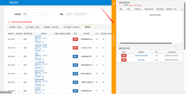 报名成功后就可以在教务系统中查看到有重修课程的课表。