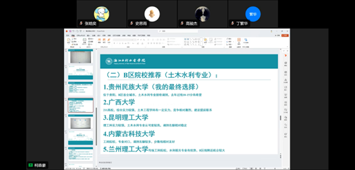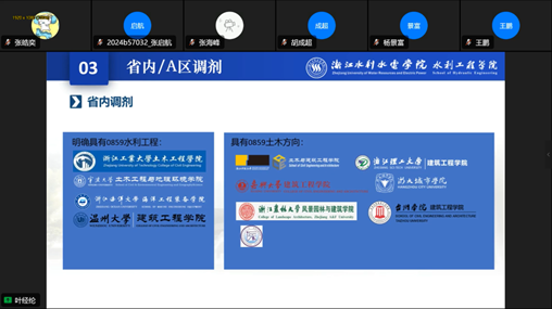 会议伊始,缪凯伦简要介绍了分享会的流程安排。学院邀请到来自河海大学水电院的洪靖辉、港航院的朱乐乐,为大家详解河海大学的复试流程与备考重点;同时邀请到温州大学的叶经纶、贵州民族大学的柯森豪,结合自身经历分享考研调剂的经验与心得。缪老师提醒同学们结合自身情况,有针对性地听取建议,充分吸收经验。