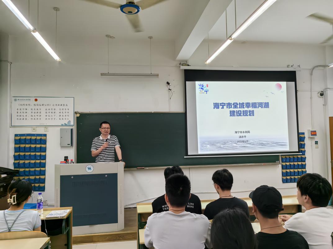 6月7日上午,海宁市水利局党组成员汤亦平高工应邀来我校,为20级农业水利工程专业学生作了题为《海宁市全域幸福河湖建设规划》的讲座。