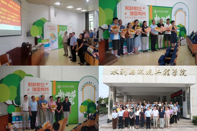 教师队伍建设工作关系着社会主义现代化强国的实现,关系着社会主义教育事业改革发展的成败,关系着社会主义建设者和接班人的培养质量。庆祝仪式围绕第39个教师节主题“躬耕教坛、强国有我”进行。全院教师集体学习省委省政府召开的高等教育强省暨高水平大学建设工作推进会议精神,暑期中层干部读书会精神,学习《深入学习贯彻习近平关于治水的重要论述》要把握的八个方面要点,集体跟读宣读了做“四有”好老师标准,做好学生四方面引路人的内涵,做模范好老师的六方面要求。希望大家“行为示范”,要以习近平总书记关于加强教师队伍建设重要论述为根本遵循,对事业忠诚、对学生热爱、对集体关心,自觉主动的向好老师,六模范老师的标准对标努力。学生代表为9位专业教师、教辅和行政职员代表送上贺卡和献花,一声“老师,您辛苦了,祝您教师节快乐!”和精心制作教师节祝福视频,带给在场老师满心感动!徐存东院长为郭雪莽教授、陈晓东教授颁发客座教授证书,两位教授在提升学院教育教学,加强与省内行业地方交流合作及提升教师能力等方面提供帮助指导。新进教师为顺利完成国(境)外访学和实践挂职任务的周宇、李志远老师送上献花表示祝贺。