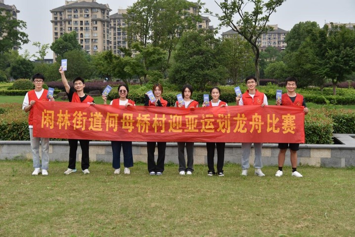 当天,水利与环境工程学院8名志愿者来到了杭州市余杭区闲林街道何母桥村,积极参与了龙舟赛事志愿服务,感受了奋楫拼搏的龙舟精神。赛后,志愿者们向当地居民发送精心准备的亚运会宣传资料,希望通过这种方式,让更多人了解亚运会,感受到这项盛大体育盛事的魅力。